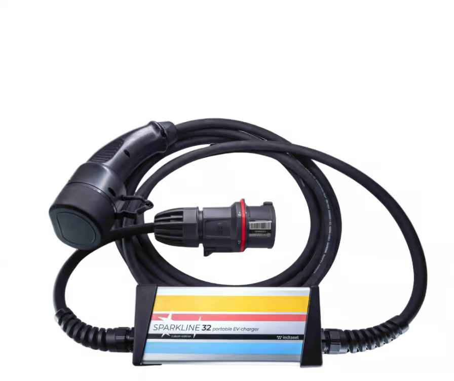 AC prenosná max 3x32A trojfázová nabíjačka pre elektromobily na jednom konci s konektorom Typ2/Typ1 (IEC 62196-2) a na druhom s priemyselnou koncovkou CEE. Krytie IP 67 . Nabíjačka vyniká výbornou mechanickou odolnosťou (odolá aj prejdeniu autom ). Nastaviteľná 6A / 10A / 13A / 16A / 20A / 25 A / 32 A